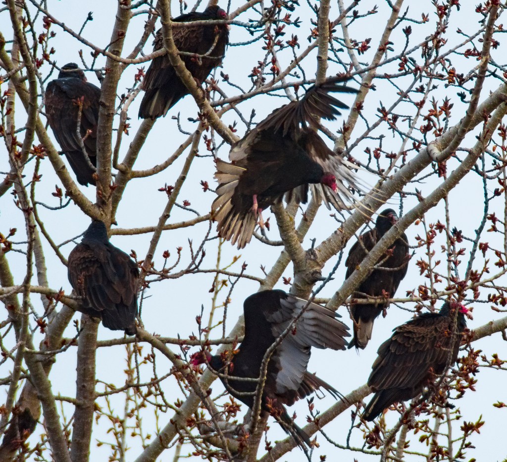 Red Shoulder Hawks making whoopee, Solvang, California